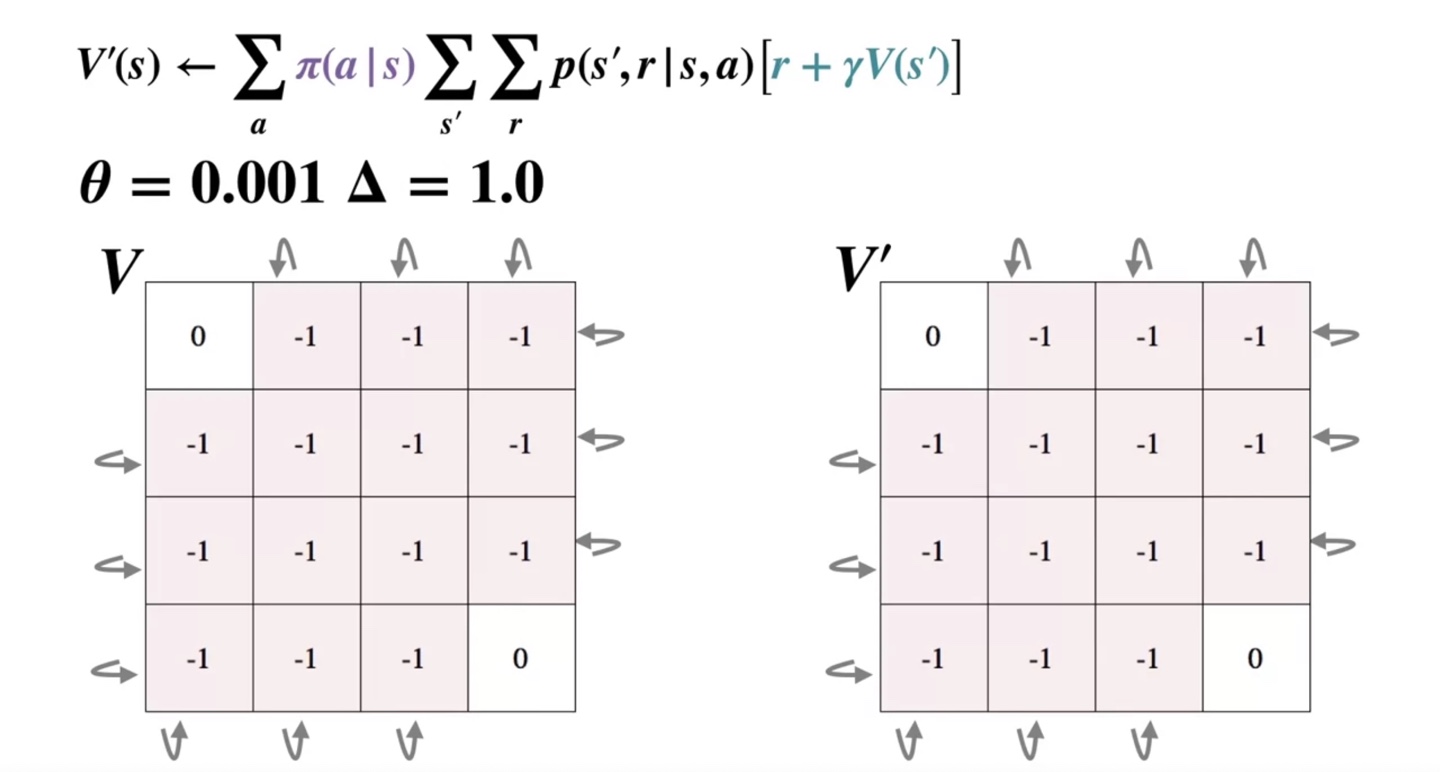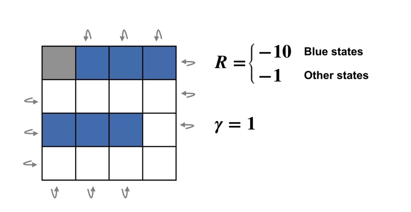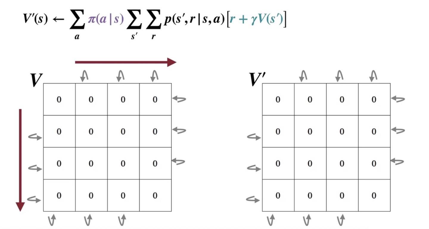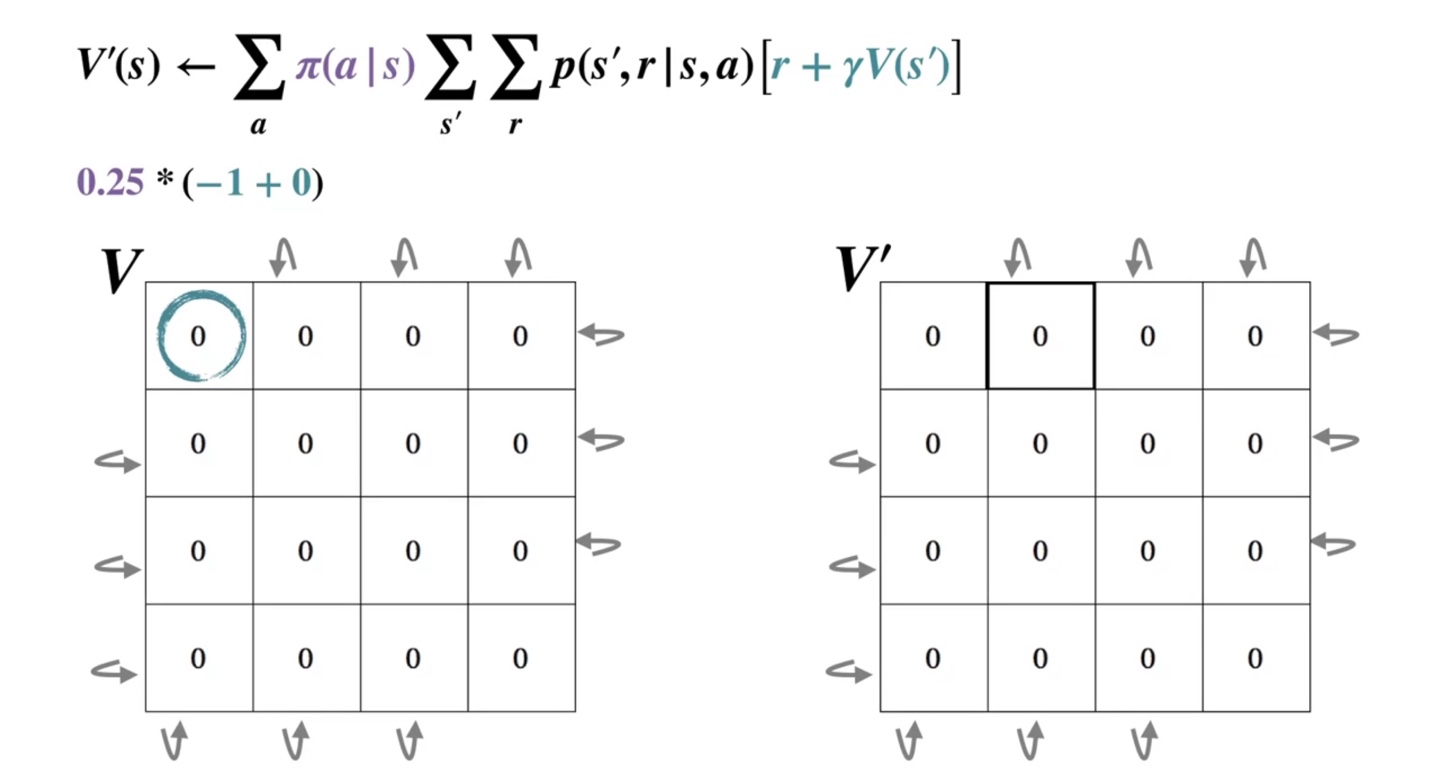 이제 왼쪽 위에서부터 board 안의 값을 쭉 보며, policy evaluation을 진행할 것이다.