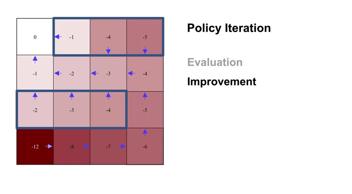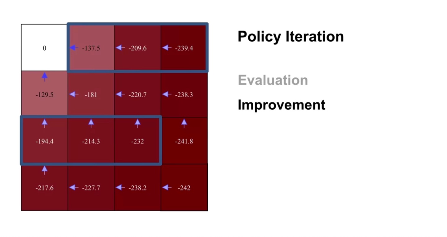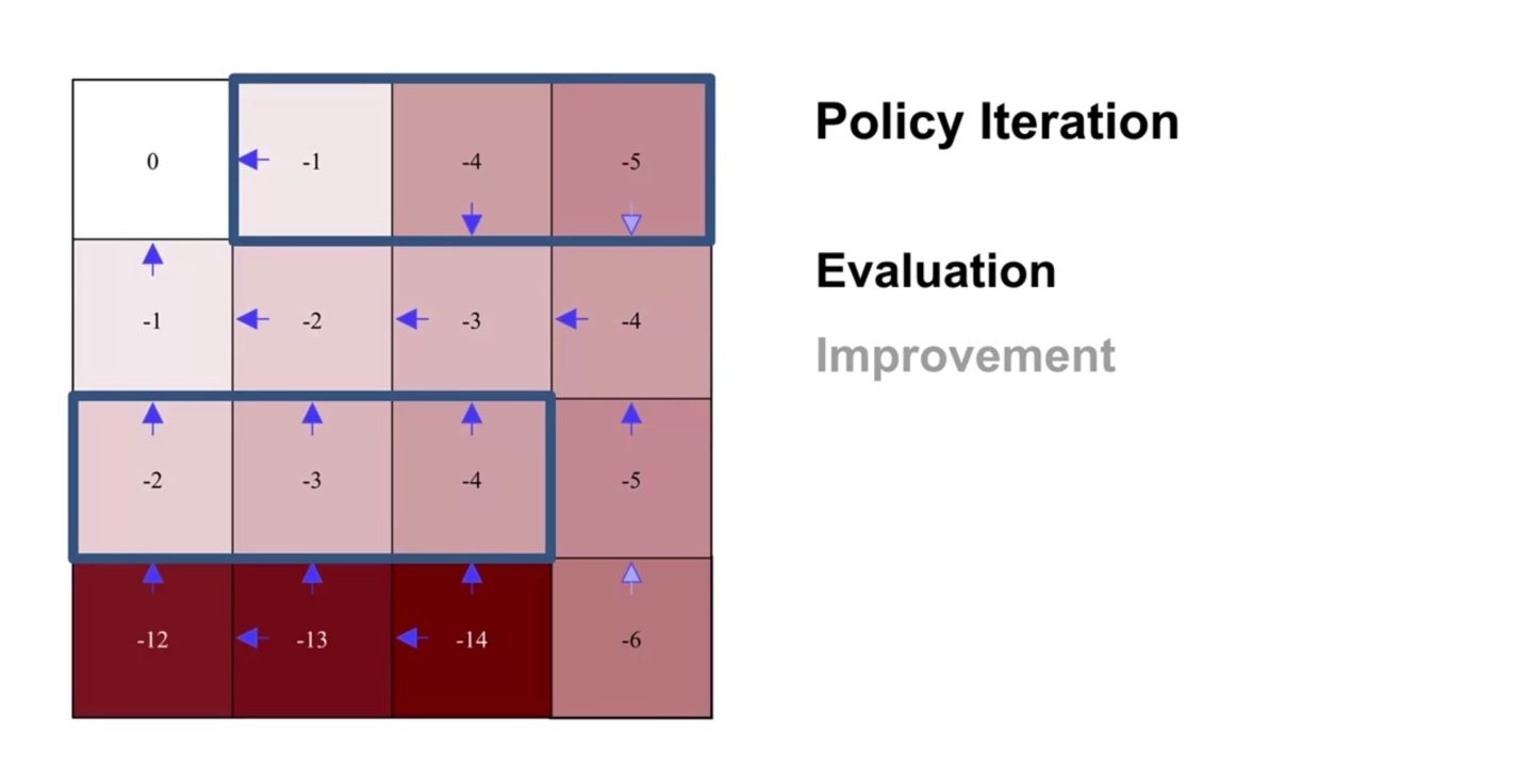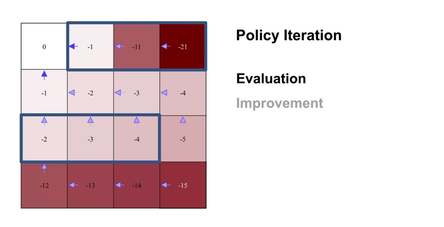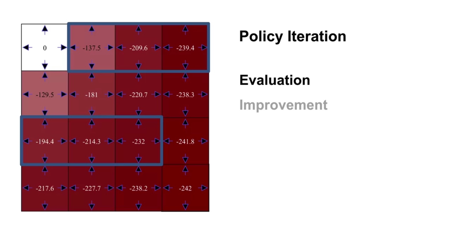 이제 첫 evaluation sweep과 improvement로 policy를 순차적으로 업데이트 해보자.