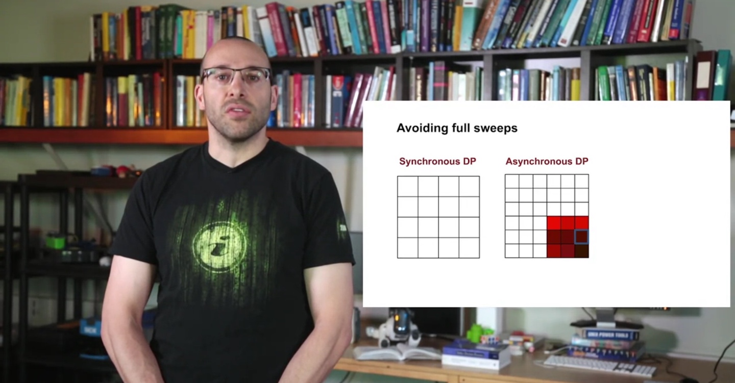 Synchronous DP는 모든 state에서의 policy probability와 value를 전부 계산해 업데이트 하는 과정이었다.