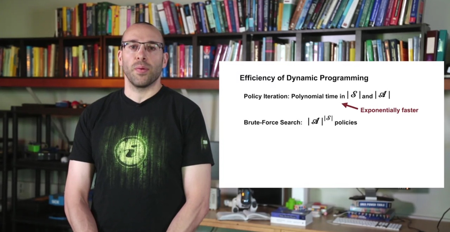 Dynamic Programming으로부터 policy iteration을 수행하는 과정은 Brute-Force search 알고리즘에 비해 선형 와 선형 를 더한 값의 복잡도를 갖는다.
