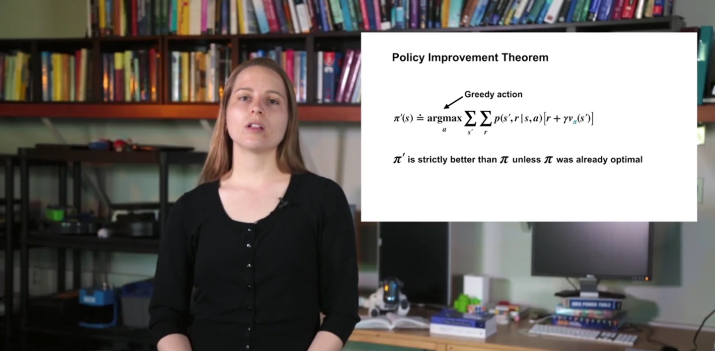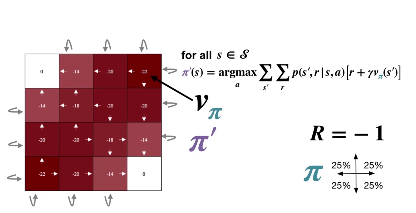 Policy Improvement Theorem은 미래 state에서의 expected value를 argmax 취하여, greedy한 action으로 policy 를 업데이트하는 과정을 말한다.