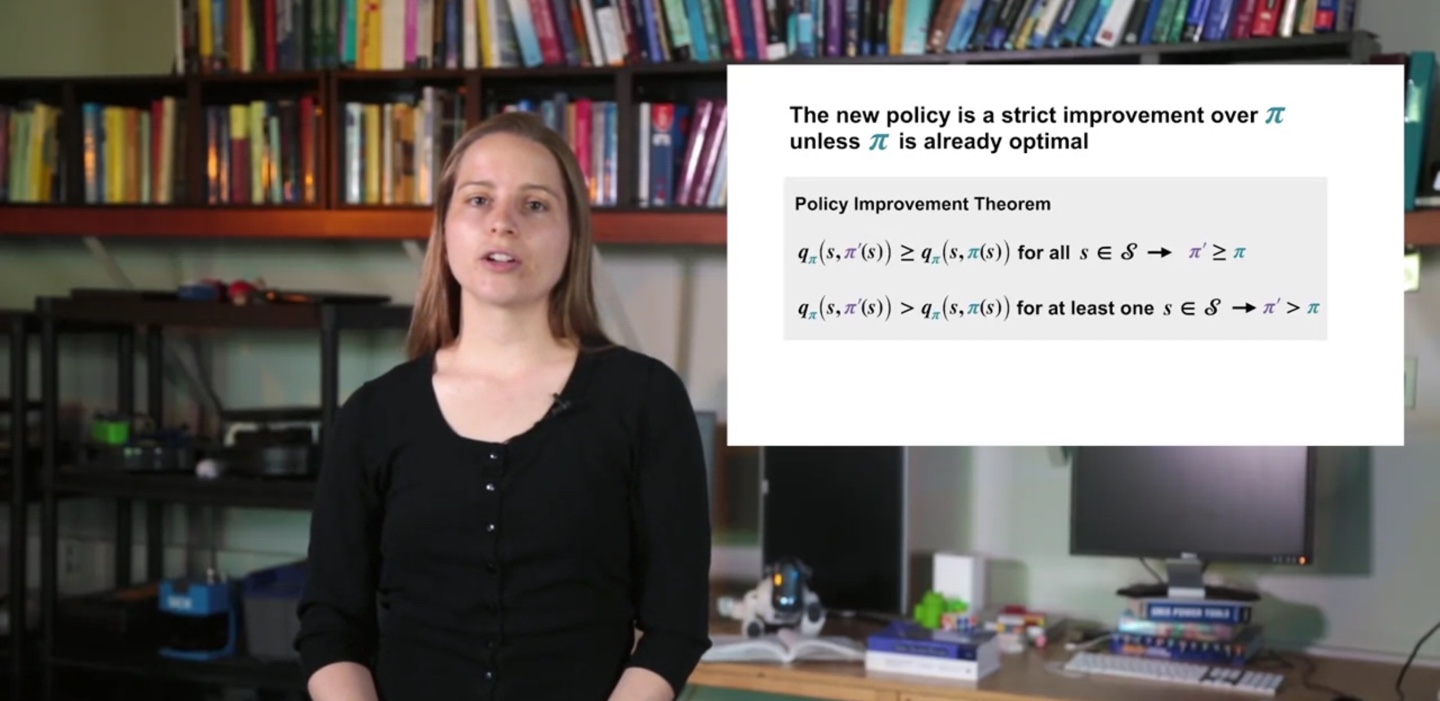 Policy Improvement Theorem은 가 이미 optimal하다는 가정 하에, 적어도 하나의 state에서 더 큰 action-value를 가진다면 더 가치가 높은 policy라고 얘기할 수 있는 정리다.