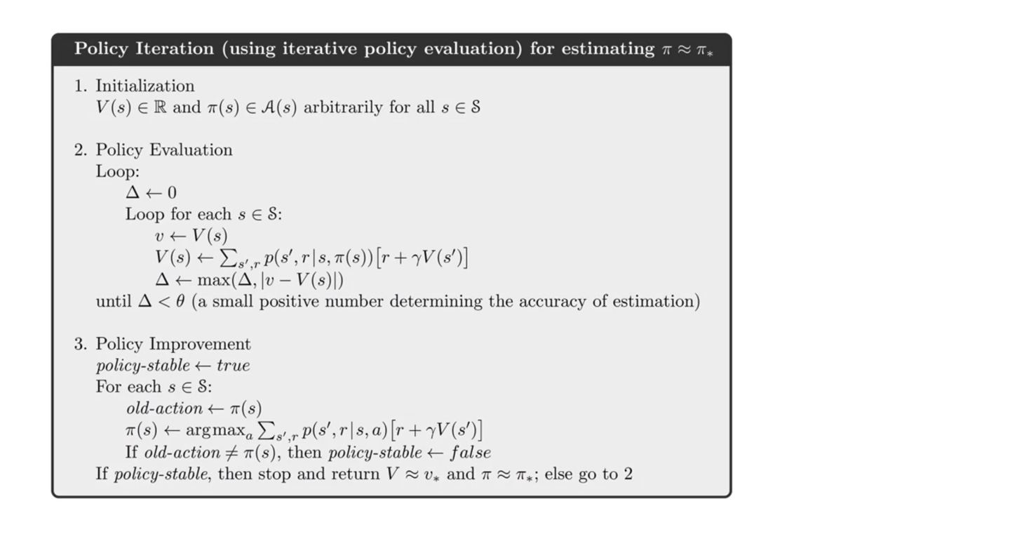 Policy iteration 알고리즘은 아래 sudo code와 같다.