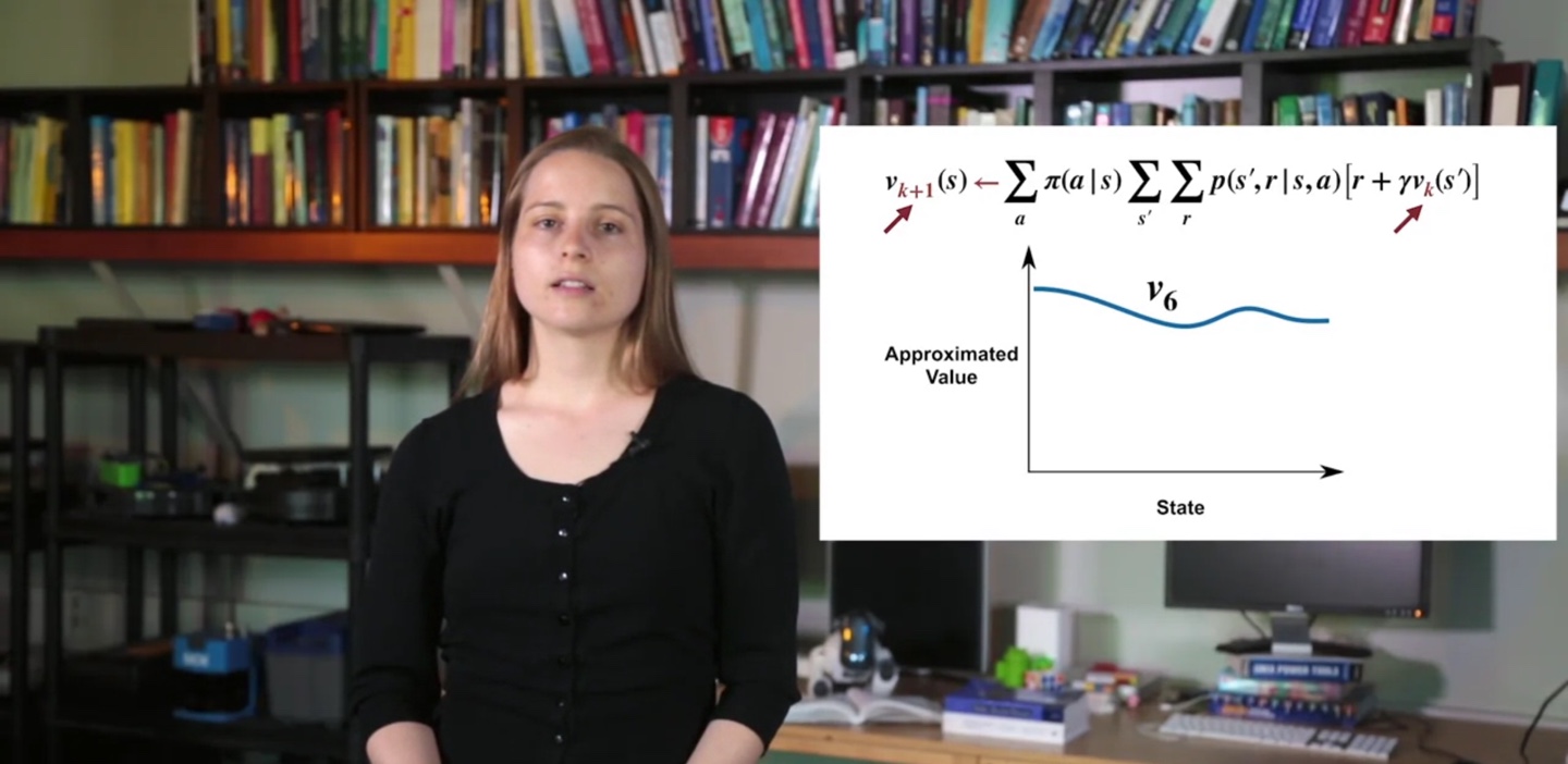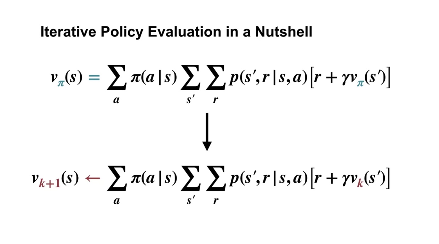 Iterative policy evaluation은 기존 Bellman equation에서의 state에 대한 notaion을 와 번째에 관한 수식으로 변경하여 표현한다.