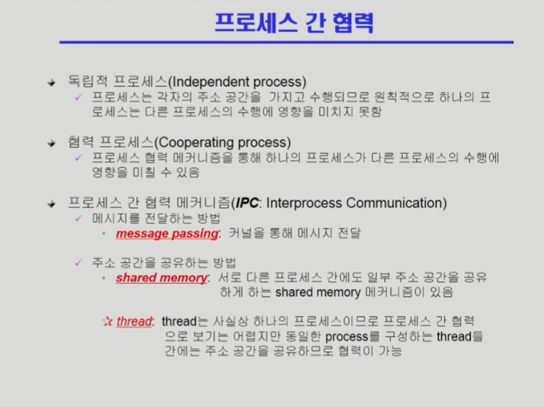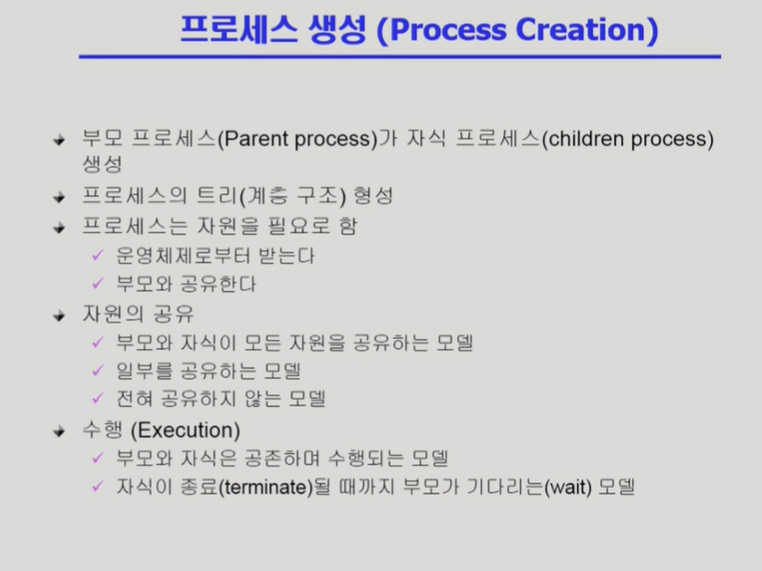 부모 프로세스(Parent process)가 자식 프로세스(children process) 생성한다.