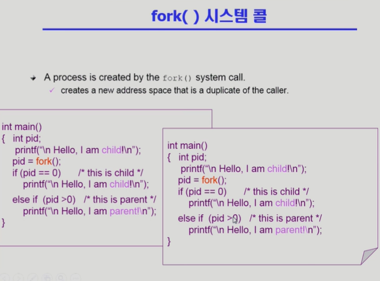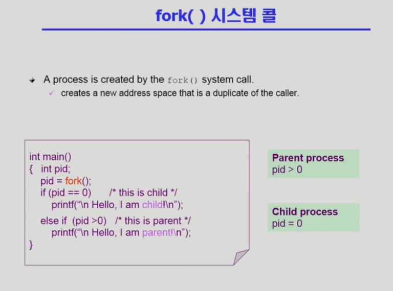 fork() : 시스템 콜이 새로운 프로세스를 생성하는 것이다.