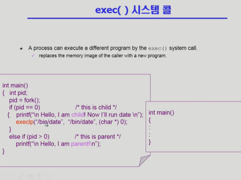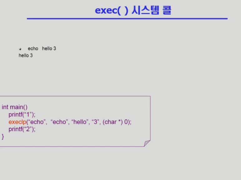 fork 다음에 이어지는 exec() : 시스템 콜을 통해 새로운 프로그램을 메모리에 올린다.