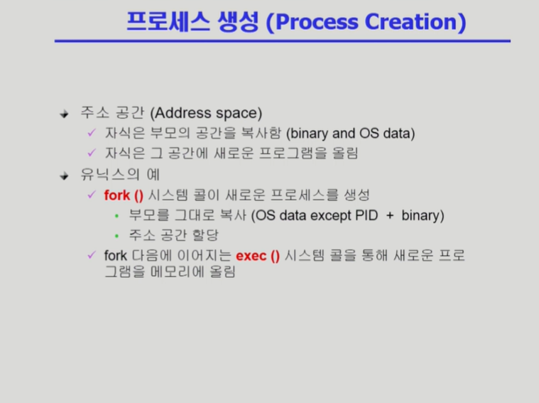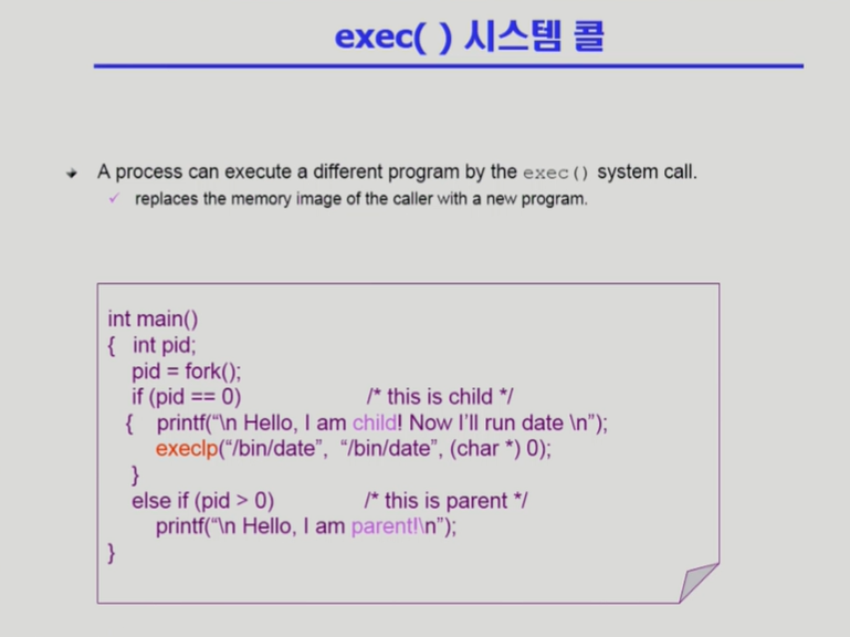 exec() 시스템 콜은 프로그램을 새로운 프로세스로 태어나게 하는 역할을 해준다.