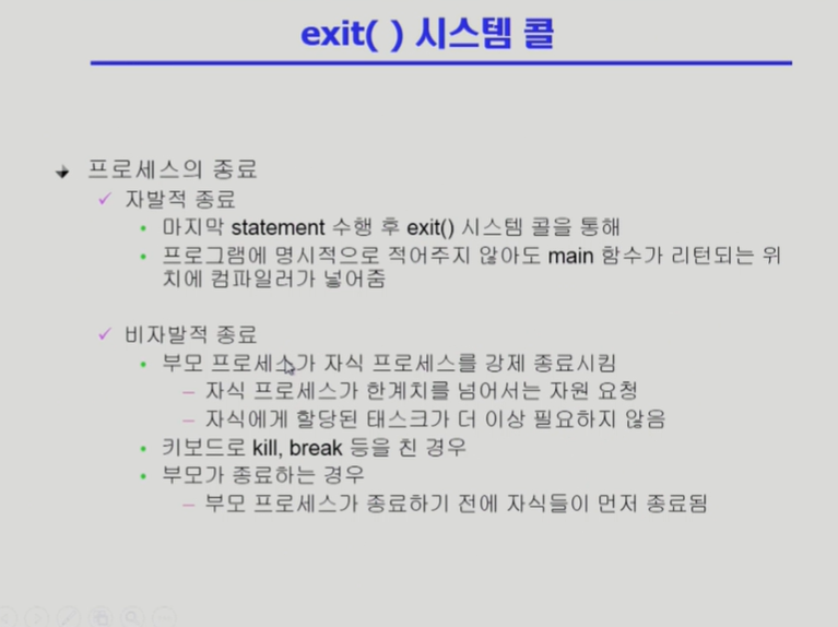 exit : 프로세스가 운영체제에게 시스템 콜을 넣어준다.