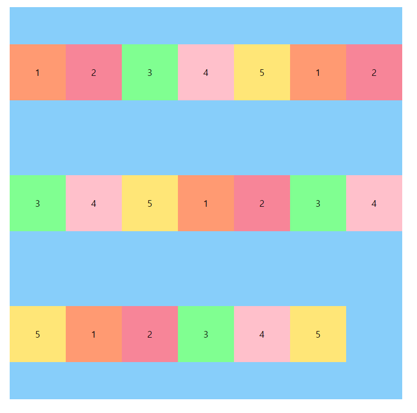 플렉스된 컨테이너 안에 자식들이 매우 많을 경우 여러 줄이 형성된다.