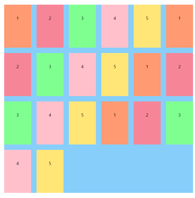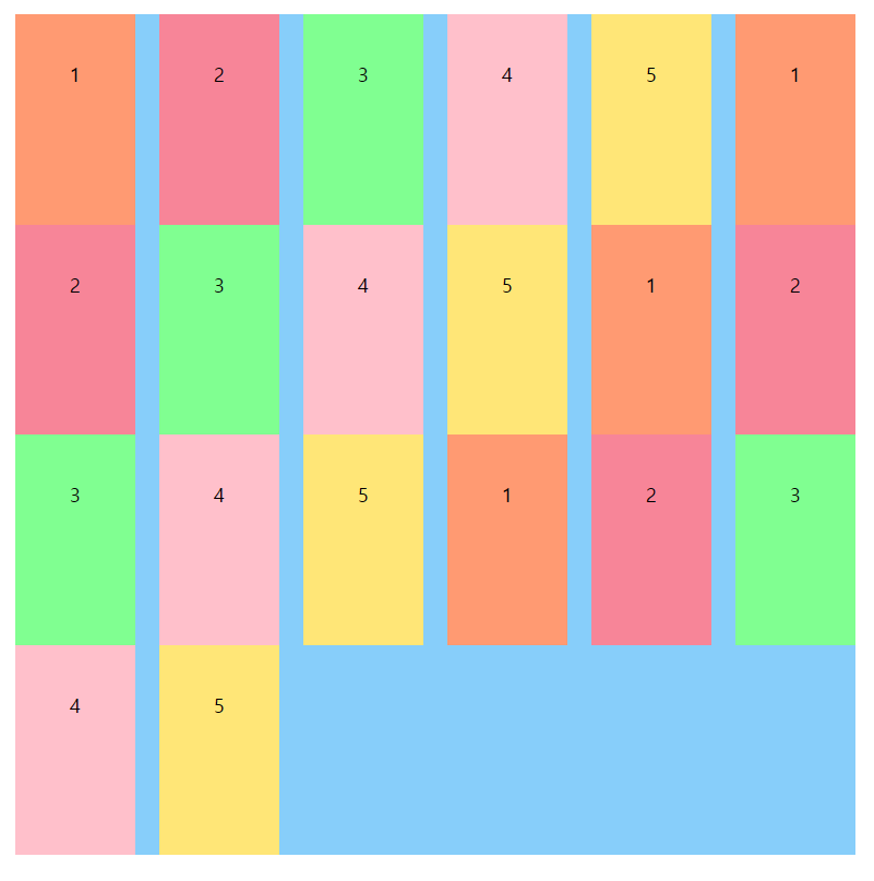 반면에 row-gap속성을 주면 위의 이미지와 같이 상하에만 여백을 줄 수있다.