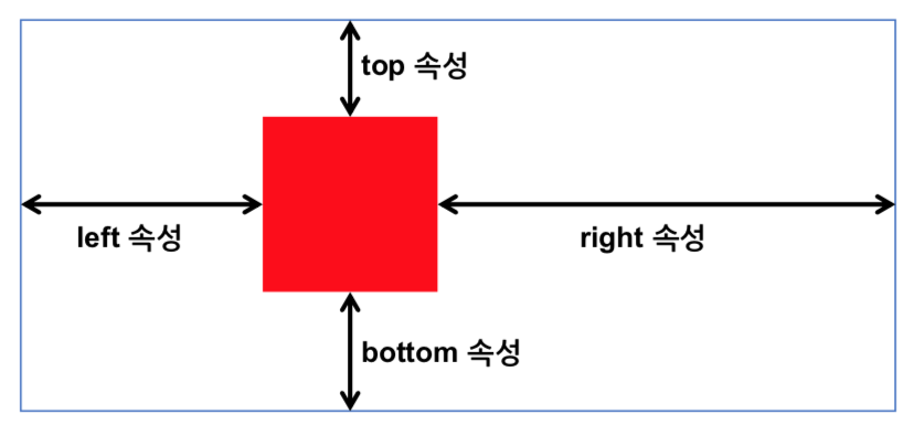 절대 위치는 left, top, bottom, right 속성 값으로 정함