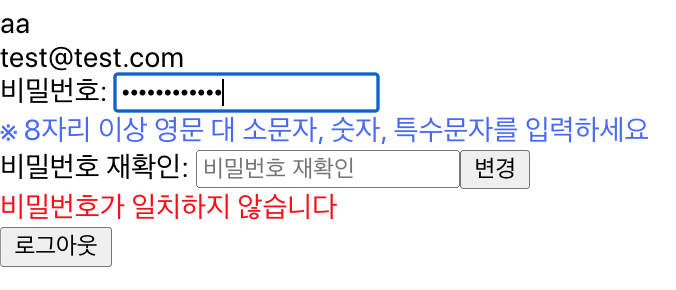 비밀번호가 일치하지 않습니다