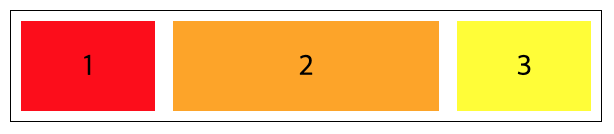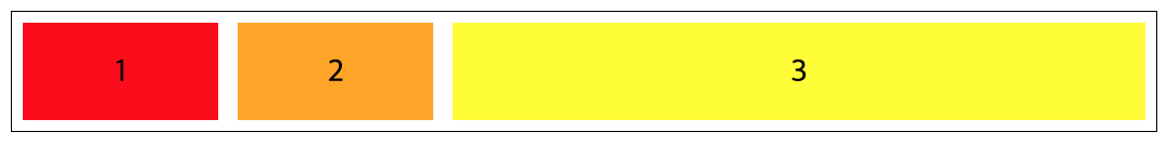 | flex-grow | 플렉스 컨테이너 내부 공간에서 플렉스 아이템의 너비 증가 비율을 설정 기본값 0 (음수 불가) width, flex-basis 속성 값에 따라 늘어나는 크기가 변할 수 있음 |