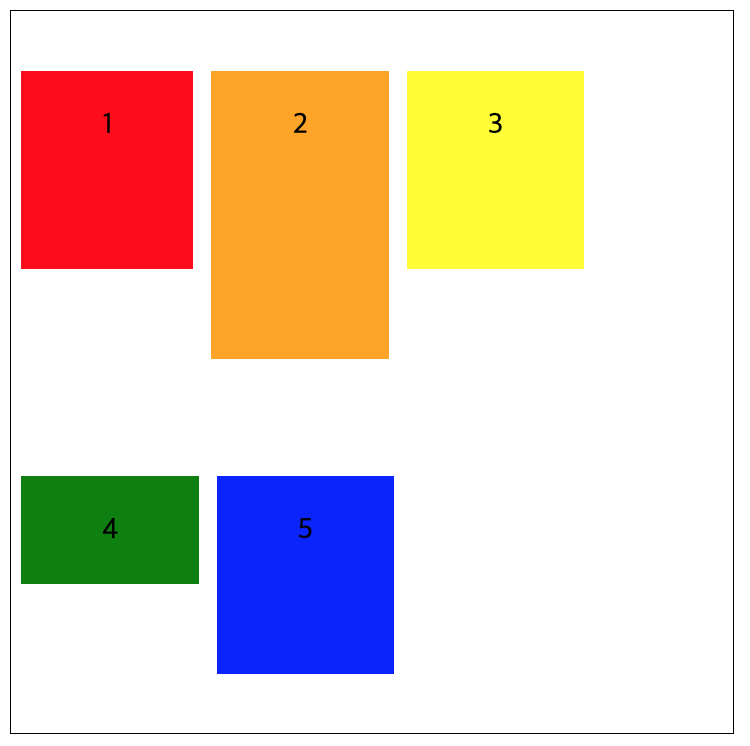 | wrap-reverse | 플렉스 아이템을 여러 줄에 표시하되 시작점과 끝점이 바뀜 |