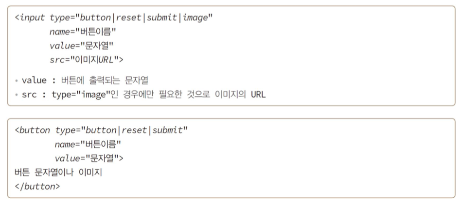 button type=”button\|reset\|submit” | 단순 버튼, reset, submit 버튼 |