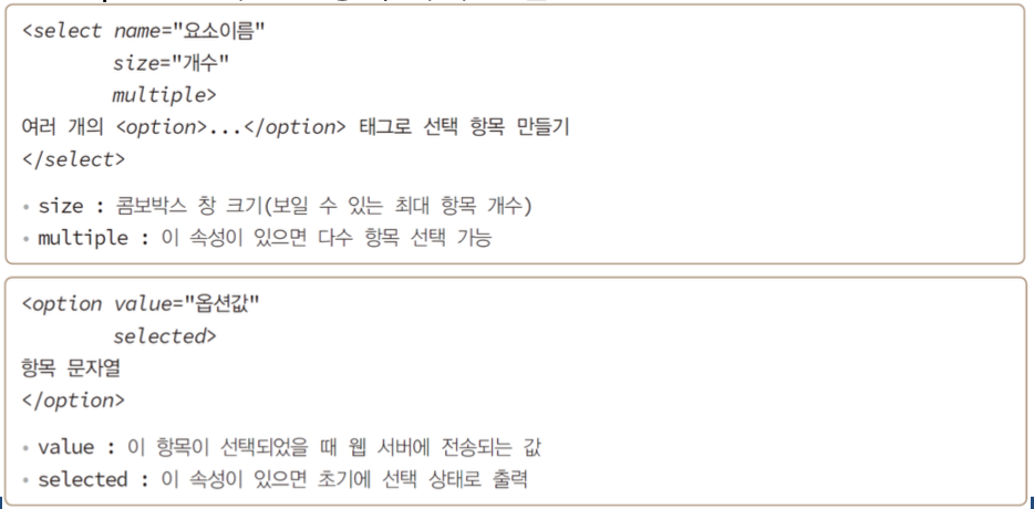 input type=”checkbox\|radio” | 체크박스와 라디오버튼 |