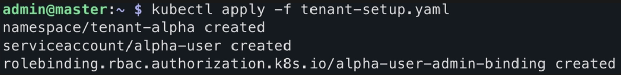 kubectl create token alpha-user -n tenant-alpha --duration=24h