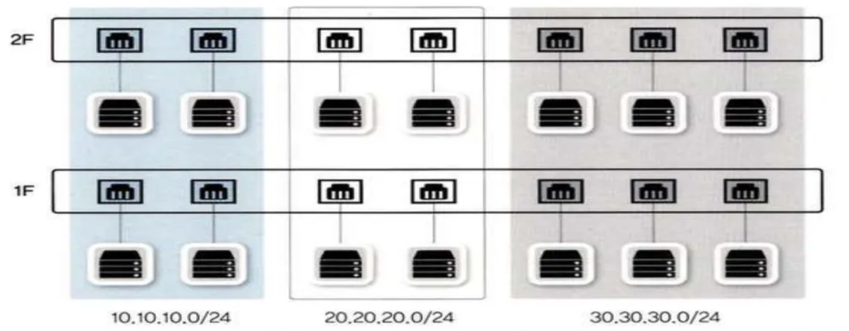 - 같은 층에서 부서별로 네트워크를 분리하거나 일반 PC, IP 전화기를 분리할 수 있음