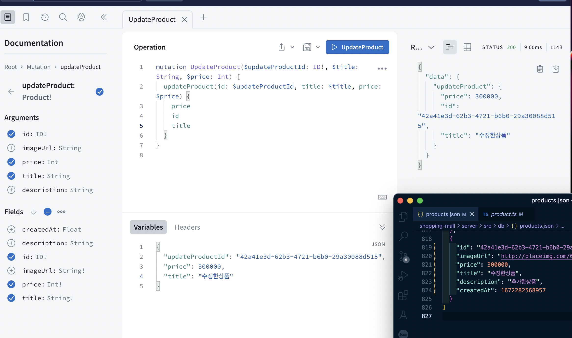 findIndex를 통해 수정하고자 하는 상품의 id와 일치하는 상품을 찾고, splice를 통해 새로운값으로 수정// src/resolvers/product.ts
