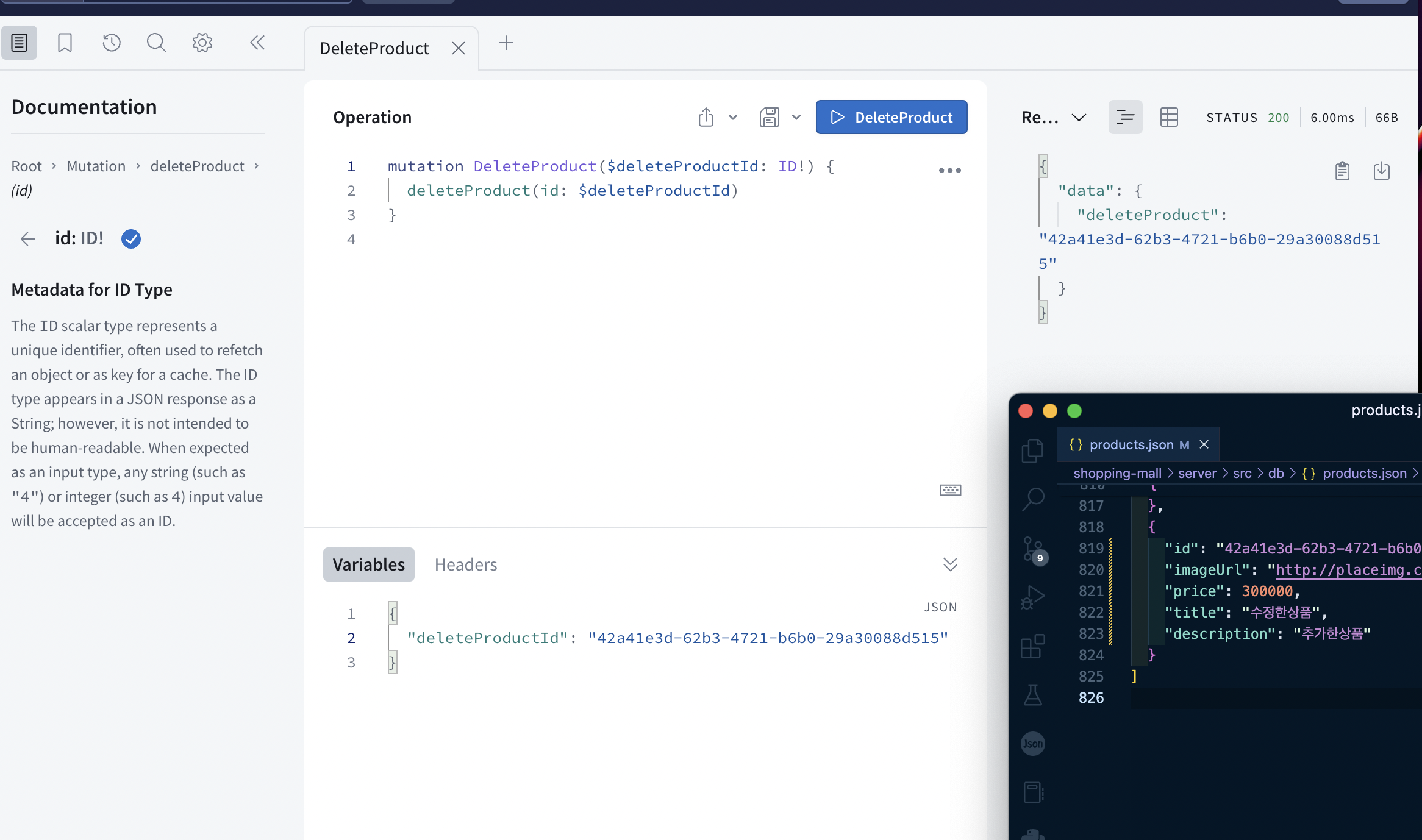 ✅ 삭제할 상품의 id만 잘 전달하면 끝. 나머지는 Server에서 삭제해서 응답할 것이다.