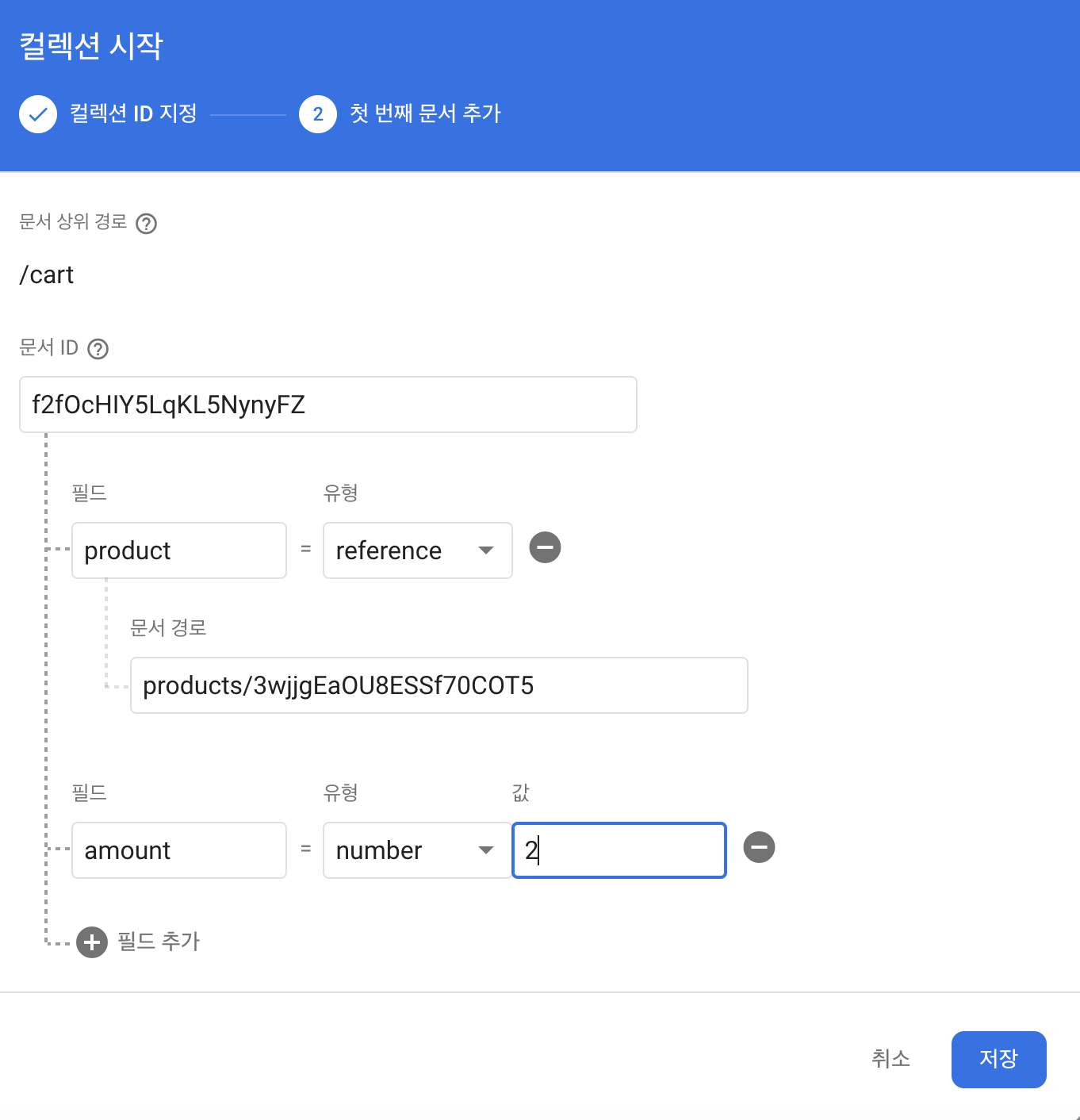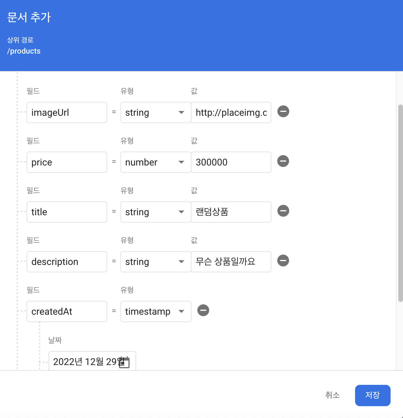 products 컬랙션에 newProduct 데이터를 추가