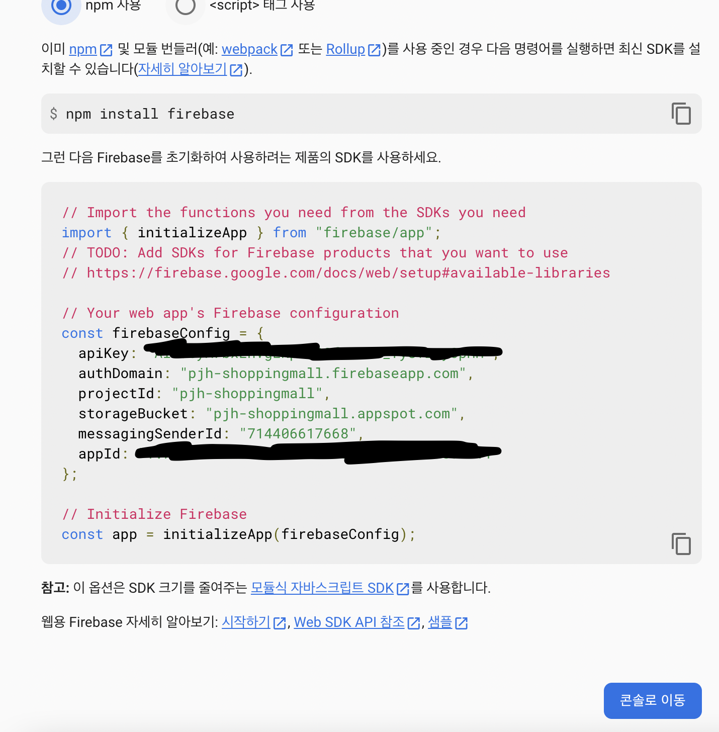 ✏️ 앱 등록 후 Firebase SDK 추가