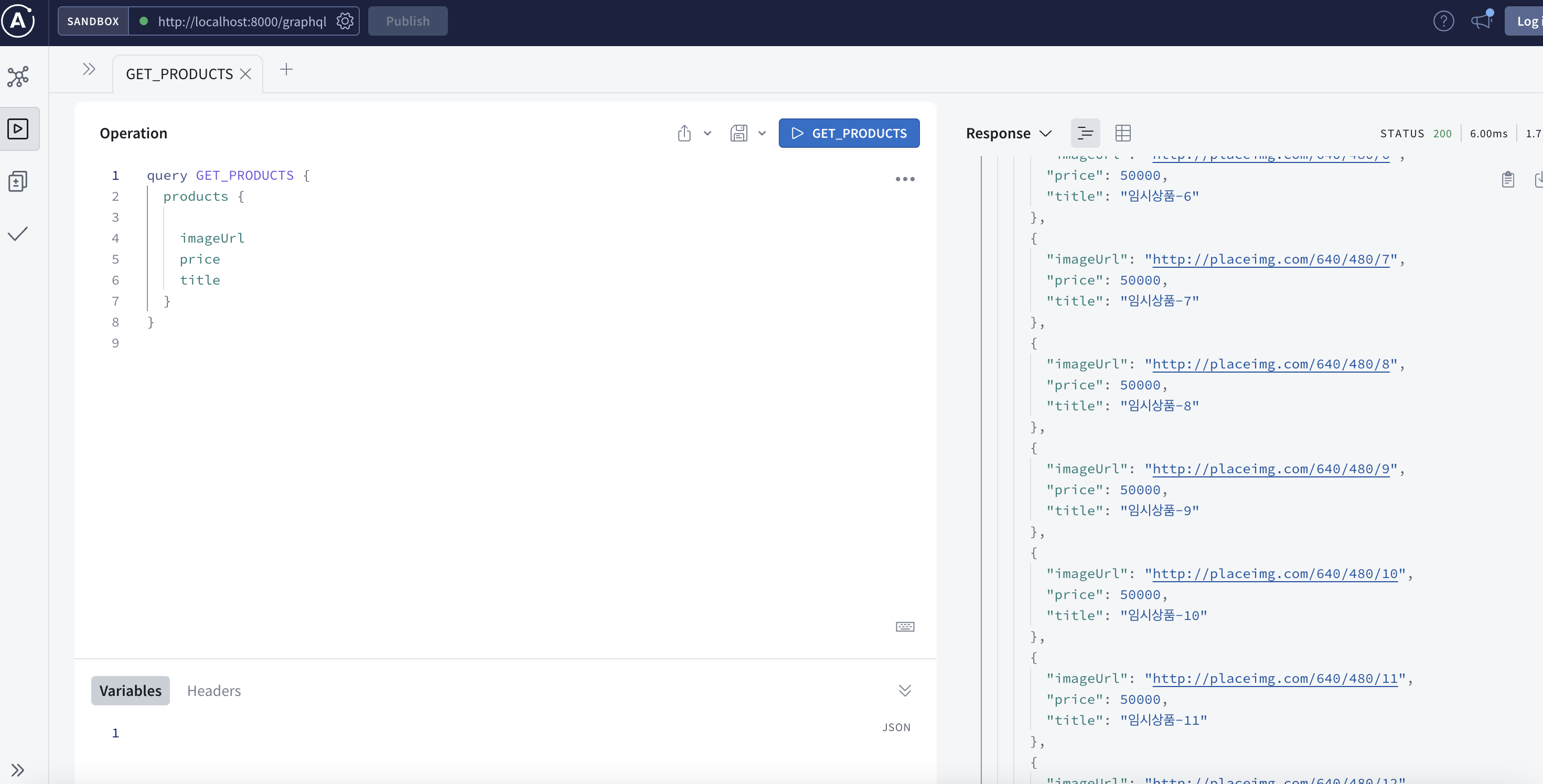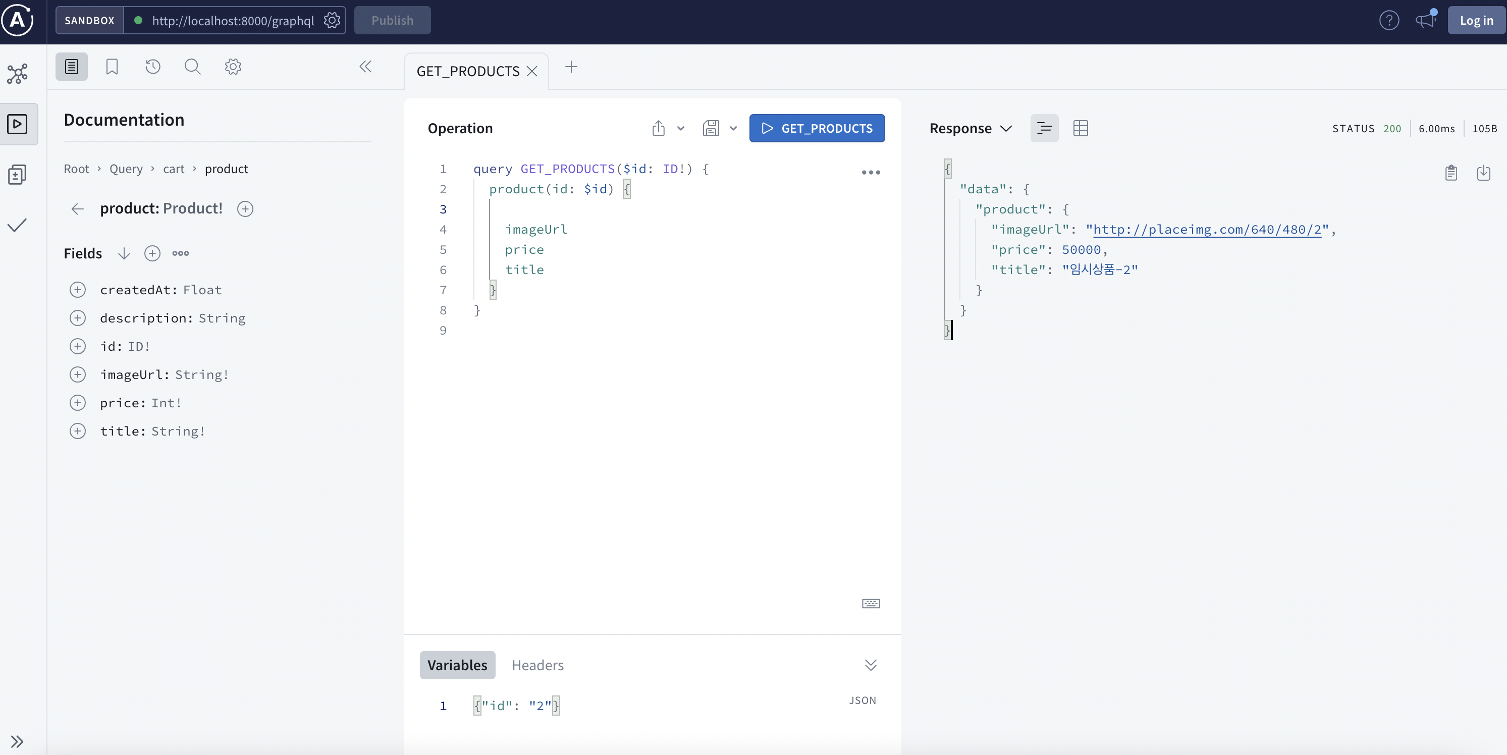 ✅ Variables에 id값을 주면 해당 id값의 데이터를가져오는 것을 확인