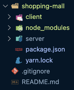 그 전에 해야할 것은 shoppingmall 폴더에 monorepo형식을 기반으로 client, server 폴더를 나눌 것이다.