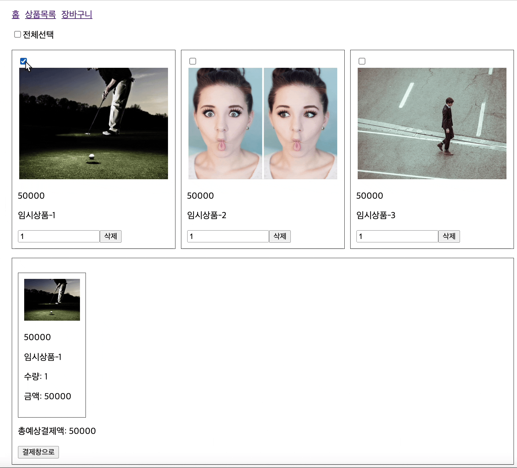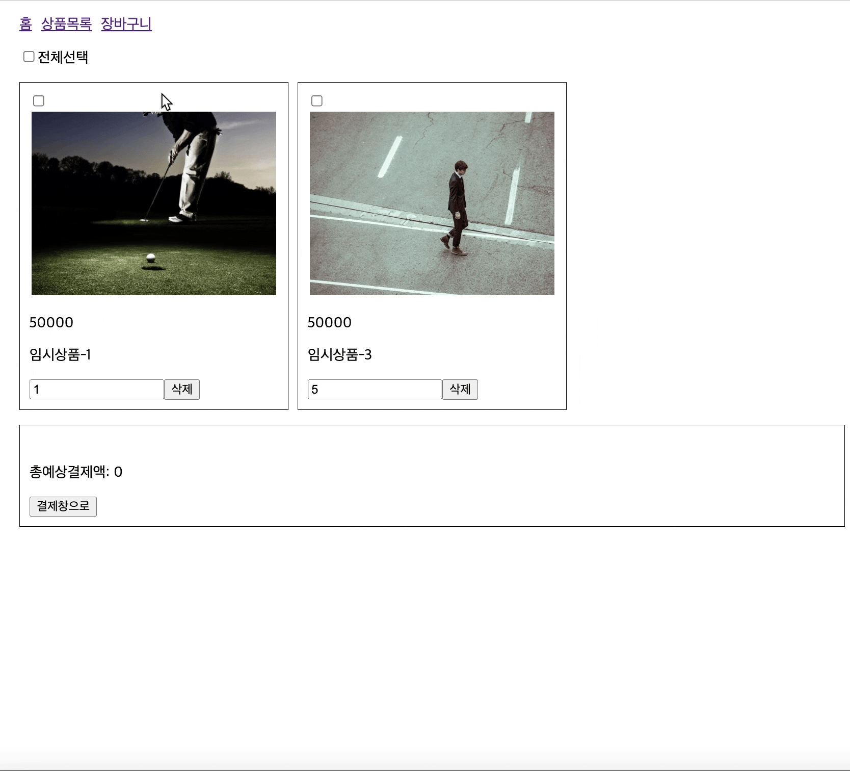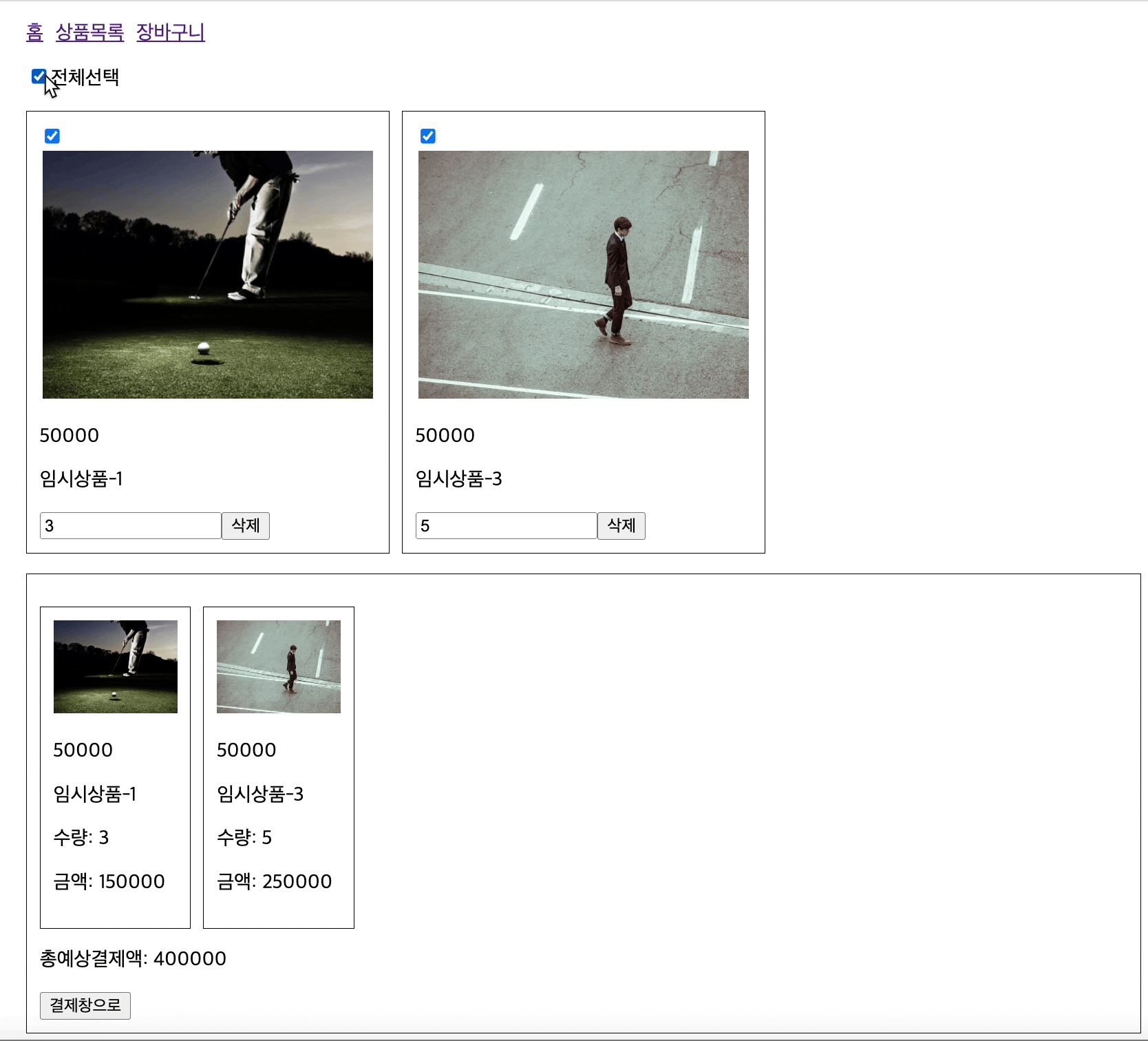 μ΄μ κ²°μ νμ΄μ§λ₯Ό μμ±ν΄λ³΄λ €κ³ νλ€. κ·Έλ¬λ©΄ μμ μ₯λ°κ΅¬λμμ 체ν¬ν μνλ°μ΄ν°λ₯Ό κ·Έλλ‘ κ²°μ νμ΄μ§λ‘ κ°μ ΈμμΌνλ€.