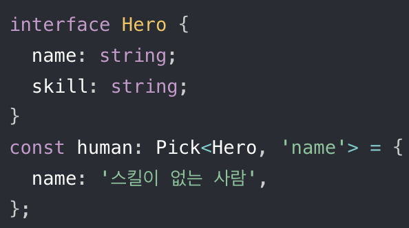 ✅ 픽타입은 특정 타입에서 몇 개의 속성을 선택하여 타입을 정의할 수 있다.