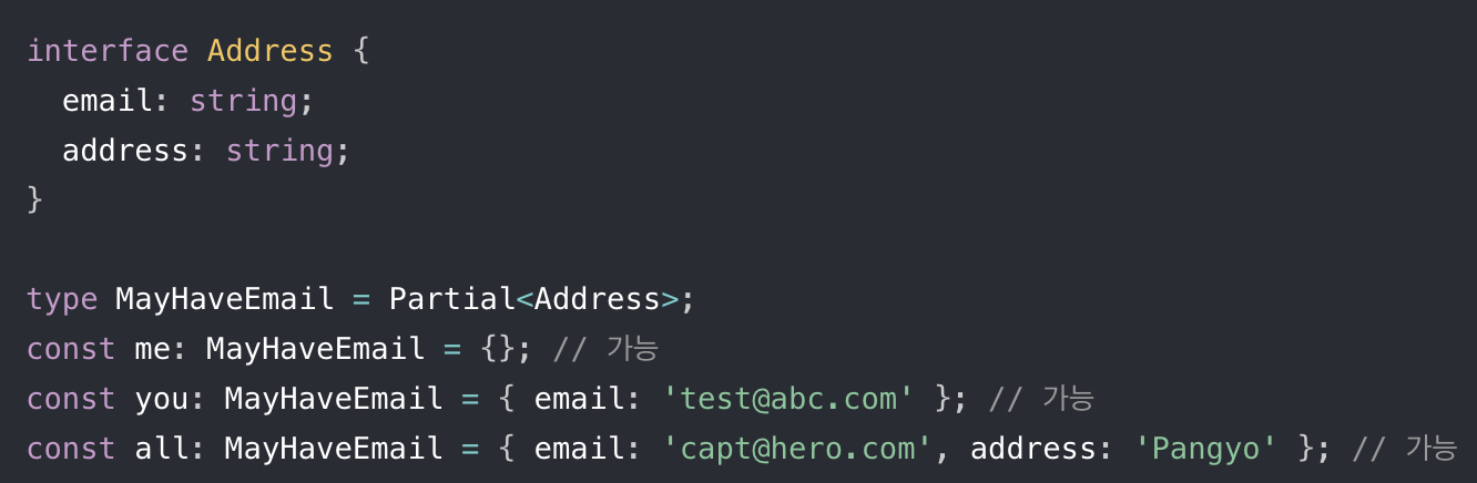 ✅ 유틸리티 타입은 이미 정의해 놓은 타입을 변환할 때 사용하기 좋은 타입 문법이다.