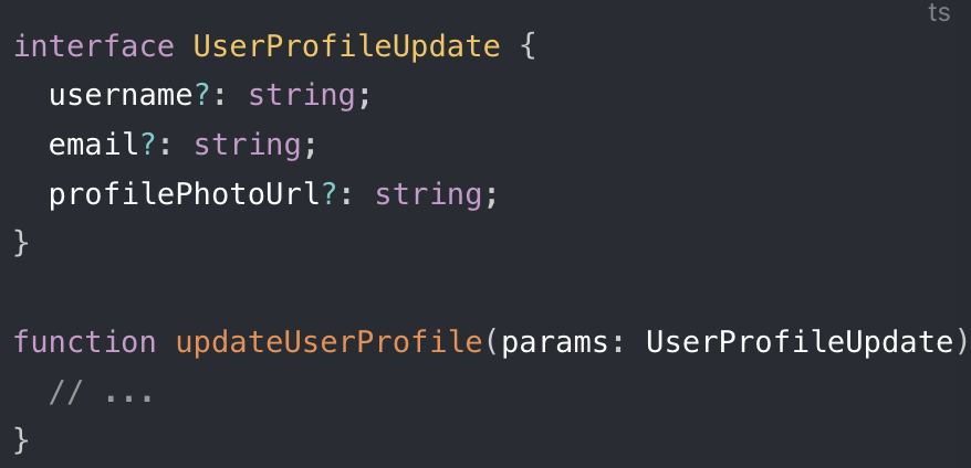 ✅ 따라서, optional 속성이 담긴 별도의 interface를 작성하게 되는데, 이것 역시 코드가 중복되고 길어진다는 단점이 존재한다.