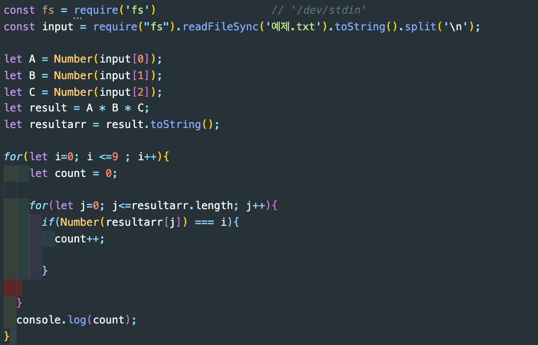 그리고 반복을 진행하다가 resultarr[4]일 때 count값이 또 다시 증가하게 되고, let count = 2 가 되어, 출력값이 2가 됩니다.