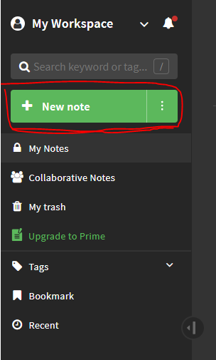 피어세션을 진행하였다.hackMd를 제안받았고, 사용 후에 너무 좋아서 공유!New Note 버튼을 클릭해서 새로운 노트 페이지를 만들 수 있다.