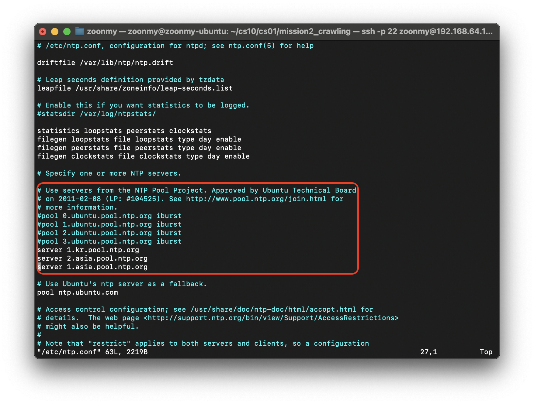 pool 0~3.ubuntu.pool.ntp.org 주석처리