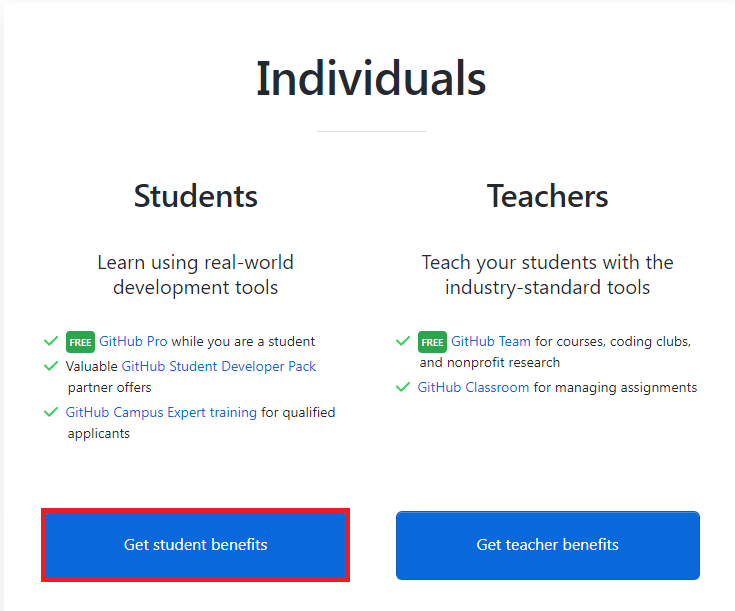 위의 링크에 접속한 뒤 Get student benefits를 눌러 신청을 한다.