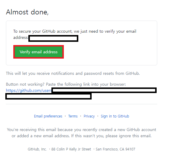 Verify email address 를 눌러 이메일을 인증해주면 된다.