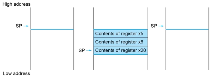 leaf_example: addi sp, sp, -12 // Stack pointer를 3-Byte 확보.