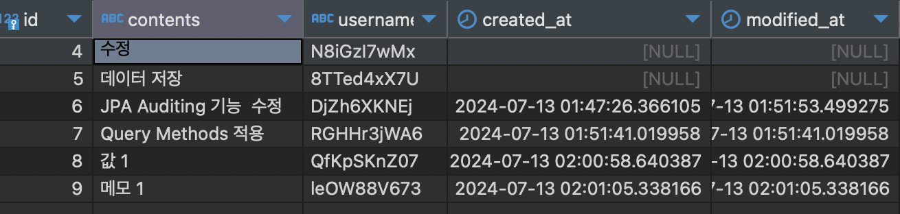 근데 Spring Data JPA에서는 시간에 대해서 자동으로 값을 넣어주는 기능인 Auditing이 있다.