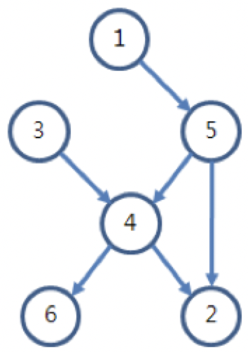 1번부터 N번까지 번호가 붙여져 있는 학생들에 대하여 두 학생끼리 키를 비교한 결과의 일부가 주어져 있다. 단, N명의 학생들의 키는 모두 다르다고 가정한다. 예를 들어, 6명의 학생들에 대하여 6번만 키를 비교하였고, 그 결과가 다음과 같다고 하자.