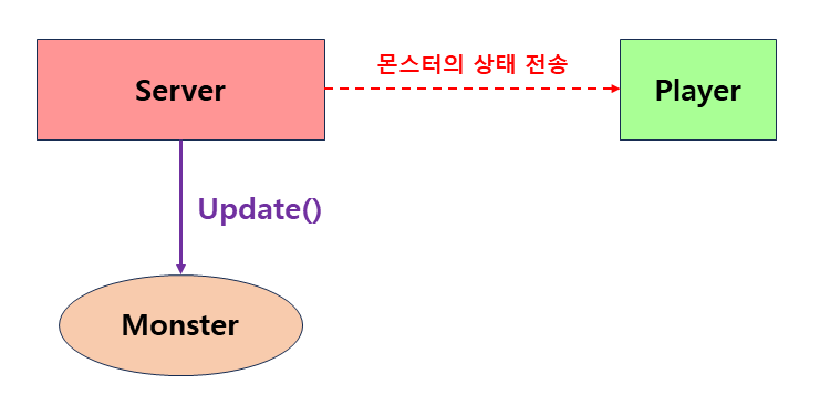 플레이어가 소환한 투사체의 피격판정을 실시간으로 처리했듯이 서버는 실시간으로 몬스터의 상태를 Update하며 현재상태의 행동을 처리하고 상태변화를 시킬것이다.