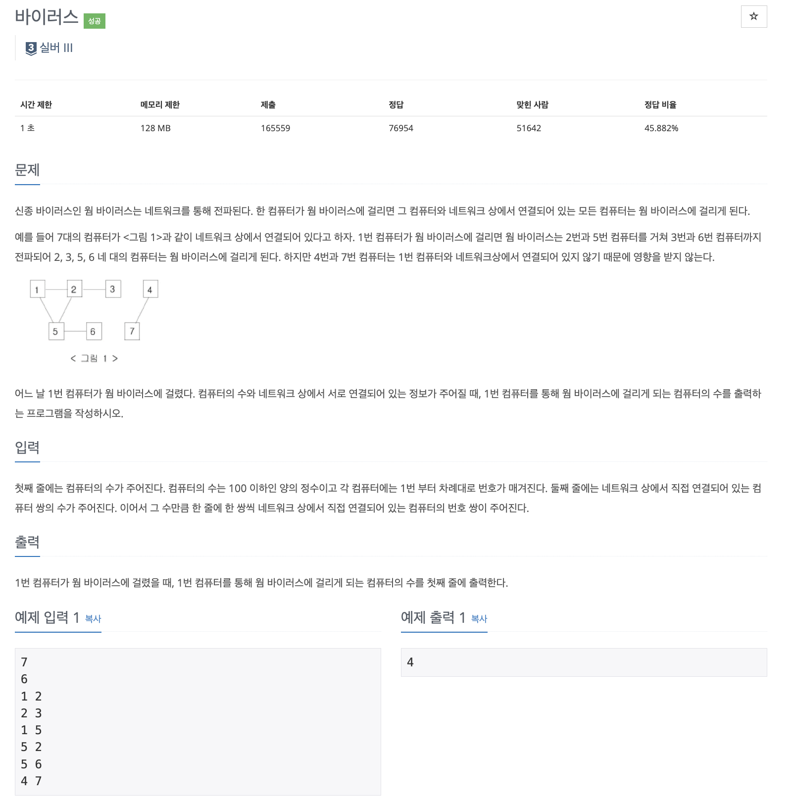 [BFS / DFS] [백준 / 2606 ] 실버1 - 바이러스 (java/자바)