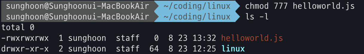 λ Ήμ΄ chmod λ‘ λλ ν 리λ νμΌμ κΆνμ λ³κ²½ν μ μλ€.