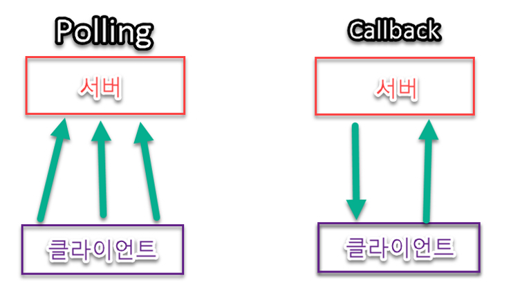 Callback 은 서버에 이벤트가 발생했는지 물어본 후에, 이벤트가 발생했을 때 클라이언트에 말그대로 응답해주는 것이다.