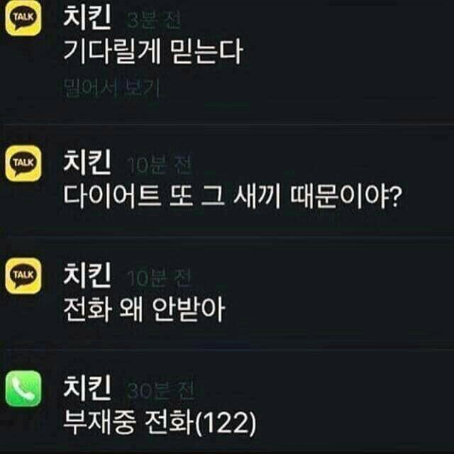 아무런 연락도 취하지 않고 기다리고 있는데, 친구가 치킨을 먹겠다고 마음을 먹었을 때 문자로 당신에게