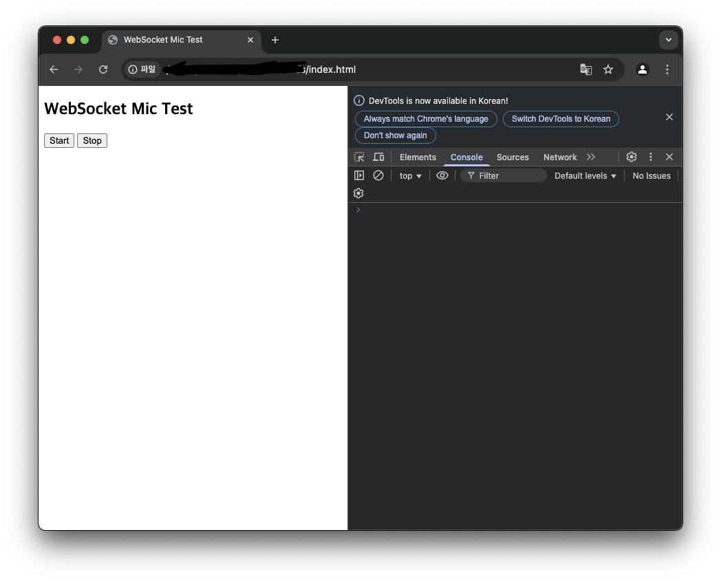 나는 마이크를 통한 음성 데이터를 실시간으로 처리하기 위한 기능을 구현하던 중이었기 때문에 샘플용 프론트 코드 또한 보여주자면,