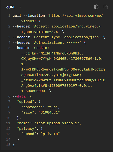 먼저, 아래와 같은 POST 요청을 Vimeo 서버에 보낸다.