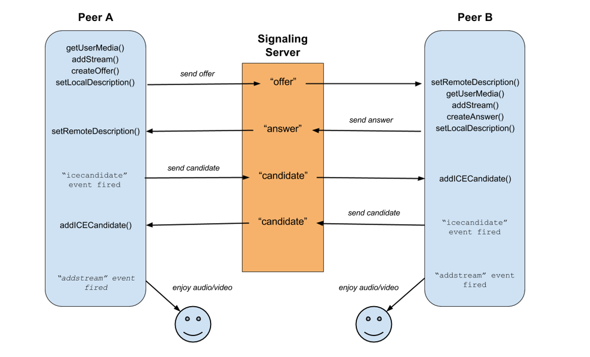 아까 나온 이 그림은 각각 offer, answer, candidate 의 SDP를 사용하는 예제이다. (직접 구현해봐야 더 자세히 이해할 수 있을 것 같다.)