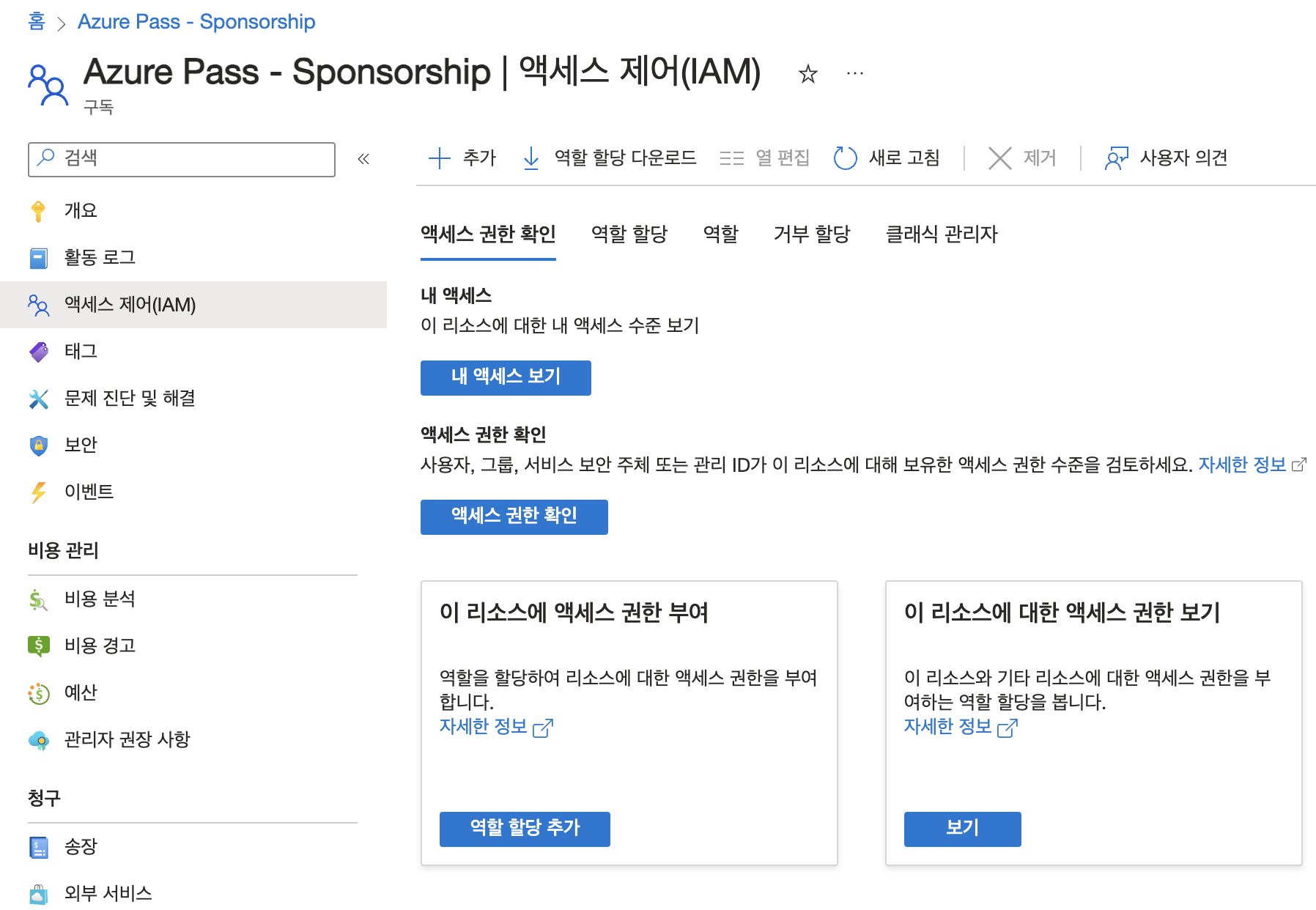 2. Azure 구독 / 리소스그룹에서 액세스 제어